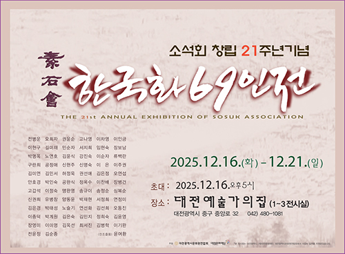 * 전시메일에 등록된 모든 이미지와 글은 작가와 필자에게 저작권이 있습니다. * vol.20251216-素石會 창립21주년기념_韓國畵 69人展 |