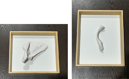 김의식 作_Bone series no.6_22x27cm_Resin, ink_2025 (좌) 김의식 作_Bone series no.8_27x22cm_Resin, ink_2025 (우)