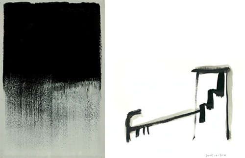 김수수 作_불_25x18cm_종이 위 아크릴_2025 (좌) 이웅배 作_공동체-H빔을 응용한 아이디어 스케치_27x39cm_종이에 먹_2025 (우)