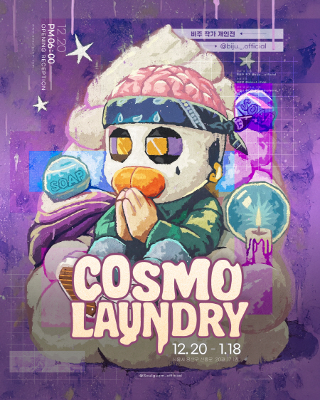 박비주 작가의 작업은 끝없이 반복되는 일상 속에서 겪은 개인적인 피로와 소진에서 출발합니다. 그 체험은 오늘날 우리 모두가 공유하는, 멈추지 않는 경쟁과 그로 인한 만성적인 불안과 피로의 정서로 자연스럽게 확장됩니다. 작가는 이 지점에서 멈추지 않고, “피로와 고통, 그리고 그 너머에 놓인 회복”에 대해 고민하며, 예술을 통해 그 답을 모색합니다. 그녀의 회화는 소모와 회복, 붕괴와 재생이 동시에 일어나는 생생한 현장이자, 상처 입은 존재들이 다시 일어설 힘을 찾는 통로입니다. 이 반복되는 순환의 과정 속에서 ‘필리(Pilly)’라는 형상이 태어난다. 필리는 단순한 알약의 의인화가 아니라, 관객에게 치유의 가능성을 건네는 매개체로서 기능합니다. 그녀는 알약 하나를 내밀며 관객을 ‘코스모 런드리(Cosmo Laundry)’라는 은유적 공간으로 초대합니다. 그곳은 우주적 규모의 세탁실이자, 더럽혀지고 해진 영혼이 정화되고 재구성되는 의례의 장소입니다. 박비주 작가는 현대인이 겪는 극도의 피로를 단순히 위로하는 데 그치지 않습니다. 그녀는 회복이라는 행위 자체를 하나의 미학적 경험으로 전환시키며, 예술이 제공할 수 있는 치유의 순간을 조용히, 그러나 명확하게 전달합니다. 이 과정에서 관객은 더 이상 피로의 희생자가 아니라, 스스로를 다시 세탁하고 재탄생시키는 주체로 거듭납니다. 박비주 작가는 이번 전시를 통해 지친 일상을 견디는 모든 이들에게 “당신의 영혼도 세탁될 수 있다”는, 치유와 회복의 메시지를 전하고자 합니다. 전시는 12.13부터 1.11까지 서울시 용산구 신흥로 20길 17 1층 소슬금 갤러리 @sosulguem_official 에서 진행됩니다.