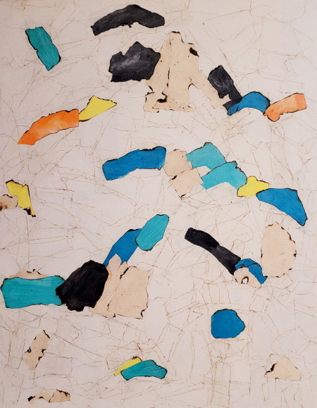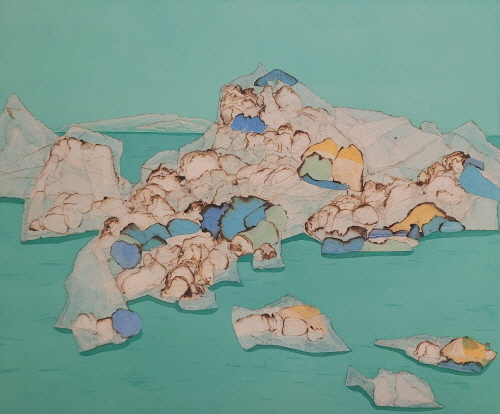 떠 있는 섬들 8_장지에 화선지 꼴라쥬, 채색, 향, 라이터_61x73cm_2025
