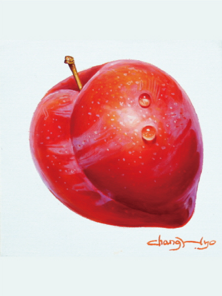 전통과실인 오얏(자두)을 주제로, 그 싱싱함과 새콤달콤한 감정을 화폭에 담았다. 자두 밭에서 막 수확한 듯한 생동감, 자두 표면에 맺힌 뽀얀 분의 싱그러움을 표현하기 위해 집중하였으며, 붉은 자두와 푸른 잎의 보색 대비를 통해 그 생명력을 더욱 돋보이게 했다. 자두를 담은 그릇으로는 전통 옹기나 함지박, 도자기 등을 사용하여 한지의 따스한 질감과 어우러지게 함으로써 정감 있고 인간적인 한국적 정서를 표현하고자 했다.