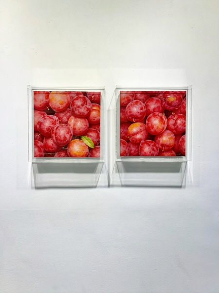 자두의 붉은색은 오방색 중 하나로, 예로부터 집안의 평안과 건강을 기원하며 잡귀를 물리치는 의미를 지닌다. 나는 자두에 ‘추억’을 대입하며 부감법 구도를 통해 풍요를 극대화하고, 행복에 대한 염원을 담고자 했다.