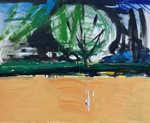 유현경의 풍경회화는 정착된 장소를 재현하기보다, 이동과 통과의 상태에서 생성된다. 한국과 독일을 오가며 이어진 삶의 시간들은 하나의 서사로 수렴되지 않고, 서로 다른 감각과 기억의 층위가 겹쳐진 풍경으로 화면에 남는다. 그의 그림에서 길과 숲, 들판과 다리의 장면은 도착을 전제하지 않으며, 떠남과 머묾 사이에서 감각이 잠시 머무는 표면으로 작동한다. 이 풍경들은 세계를 설명하기보다, 그 앞에 서 있는 감각을 그대로 남긴다.