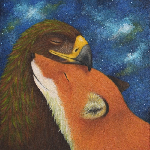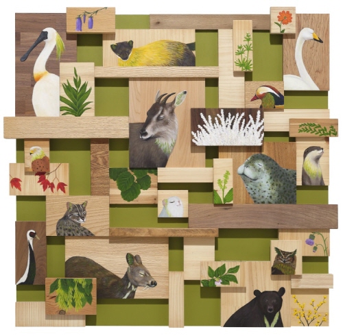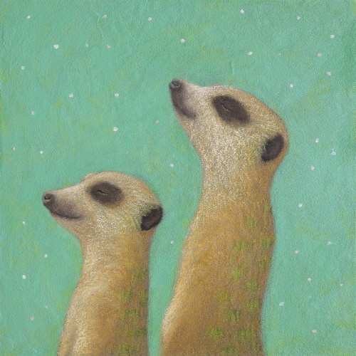 그림 속 동물들은 모두 눈을 감고 있다. 각기 모양도, 크기도, 처한 상황도 다르지만, 뜨거운 사막에서도 푸른 초원과 오아시스를, 차가운 눈과 얼음 속에서도 따스한 꽃밭을, 깊고 어두운 바다에서도 하늘을 꿈꿀 수 있어 그들은 모두 평안하다. 당장 눈앞에 보이는 것이 아닌, 그 너머의 영원을 꿈꾸는 자. 사자와 양이, 호랑이와 사슴이 서로 쫓고 쫓기지 않아도 되는 그곳을 꿈꾸는 자. 그들의 털이나 갈기의 일부분을 식물처럼 표현한 것은 그러한 평안과 사랑과 평화의 꿈이 계속 자라나고 꽃피우고 열매 맺기를 바라는 마음이다. 우리도 이 땅에서 천국을 꿈꾸는 자가 되기를 소망하고 기도하며 그렇게 그림을 그린다. 그리고 그림을 보는 이가 ‘눈감아보기’를 원한다. ‘눈감아보다’라는 말에는 눈을 한번 감아본다는 ‘시도(try)’의 의미와 눈을 감고서 ‘본다(see)’라는 두 가지 의미를 담아본다.