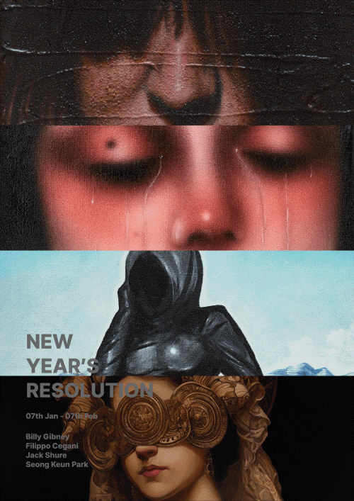 디 언타이틀드 보이드에서는 1월 7일 부터 2월 7일까지 Billy Gibney(빌리 기브니), Filippo Cegani(필리포 세가니), Jack Shure(잭 슈어), Seong Keun Park(박성근)의 ‘New Year's Resolution’을 선보인다. 본 전시는 네 명의 작가가 각기 다른 방식으로 이미지가 남기는 흔적과 생성의 과정을 탐구하는 지점에서 출발한다. 사물, 종교적 상징, 개인의 기억, 욕망의 잔재 등 서로 다른 이미지의 원천은 각 작가의 회화 속에서 또 다른 맥락으로 나타나 새로운 감각을 만들어 낸다. 그들의 작업은 재현을 넘어서, 시간·감정·질서의 층위가 어떻게 형상으로 남는지를 보여주며, 이미지란 고정된 의미가 아닌, 축적되고 흔들리며 다시 생성되는 감각의 지층임을 깨닫게 한다. 네 작가의 시선은 서로 다른 방향을 향하지만, 그들의 작업은 전시에서 공명하며 관람자가 자신의 시간과 기억을 다시 바라볼 수 있는 여지를 만들어낸다.