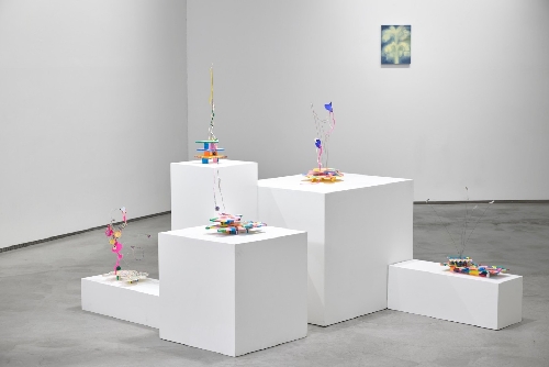 선유의 조각들은 사소한 요소들이 모여 이루어진 관계망을 연상시킨다. 자력과 중력에 의지해 간신히 균형을 이루는 구조들은 어떤 거대한 전제나 확고한 서사를 제시하지 않고, 오히려 작은 사물 하나하나를 천천히 바라보게 한다. 철사와 철사를 잇는 것은 자그마한 자석 하나일 뿐이며, 오려진 천 조각은 가는 바늘 끝에 걸려 겨우 매달린다. 비즈가 꿰어진 선들은 가볍게 꼬인 채 스스로의 무게에 더해 인조 속눈썹의 것 또한 감당한다. 이 섬세한 장면들 속에서 사물 간의 의존과 연결이 드러나는 순간, 관계는 고정된 실체가 아니라 지속적으로 생성되고 변하는 과정임을 인지하게 된다. 선유는 이러한 유동적 관계를 조형 언어로 번역하며, 보는 이의 시선을 보다 예민한 층위로 이끈다.