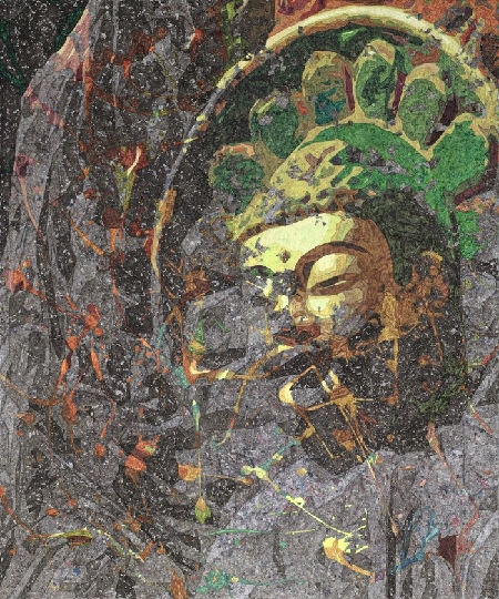 Jeongsu Park 作_빗발치던 총탄을 마주하다 2_캔버스에 아크릴릭, 신문지_72.7x60.6 cm_2025