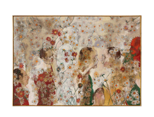 Standing amid flowers in full, uncontained bloom, unpartitioned by walls or doors, this figure holds its gaze steady. It is a gesture that resists surrender to collective affect, calling instead for a return to individual measure and responsibility.