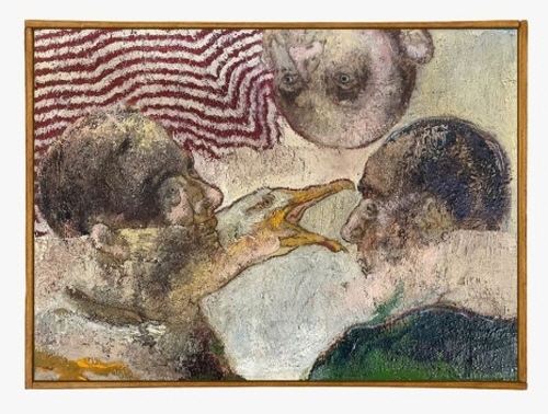Most striking is the recurring figure of the “man in ties,” repeated across canvasesㅡ figures that read less as individuals than as units functioning within a system. They obey visible rules. The joker, by contrast, appears to mock those rules, yet is simultaneously more deeply ensnared by them than anyone else. The suited gentleman and the painted clown are, Jones suggests, not opposites but reflectionsㅡtwo faces of the same capture. Jostling without clear purpose, afraid of missing something, they surge and collide, shouting their claims into the mass. Still, no definitive line is drawn between who is rightㅡor wrong. As the exhibition unfolds, the crowd in Jones’s gaze reveals itself as a compression chamber of excessive emotionsㅡanxiety, desire, emptiness, competitivenessㅡcondensed into a single surface. And yet, within this suffocating density, Jones refuses to relinquish hope for the human individual. In Self Reflection, for the first time, a figure appears who meets another’s gaze while simultaneously confronting their own imageㅡthe sole subject who truly looks at themselves.