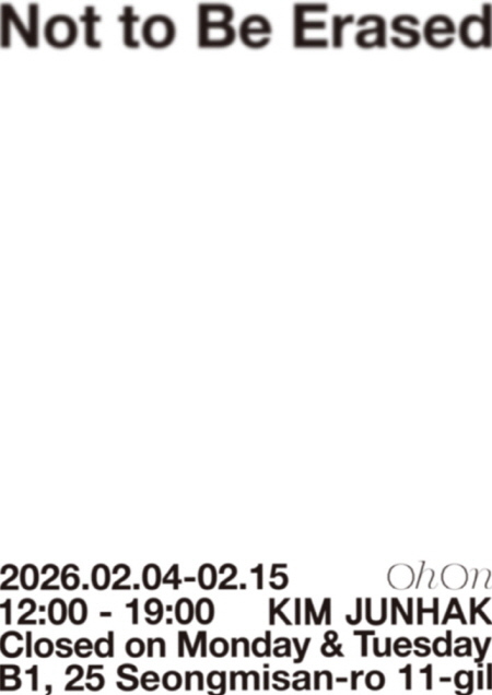 지워지지 않기 위해 지워지기. 김준학 개인전 《지워지지 않기-Not to Be Erased》는 이 역설을 택한다. 작가는 의미와 가치를 대리해 온 대상을 소거함으로써 눈에 보이지 않는 그것들이 드러날 자리를 만들어낸다. 미술 작품이 갖는 위상과 권위는 조각을 품고 또 보호하는 ‘척하는’ 얇은 막 속에 똬리를 틀고, 이를 떠받쳐 온 전시 공간과 좌대로 대리되는 제도는 가벽 뒤 임시적인 공간에 엉덩이를 붙인다.