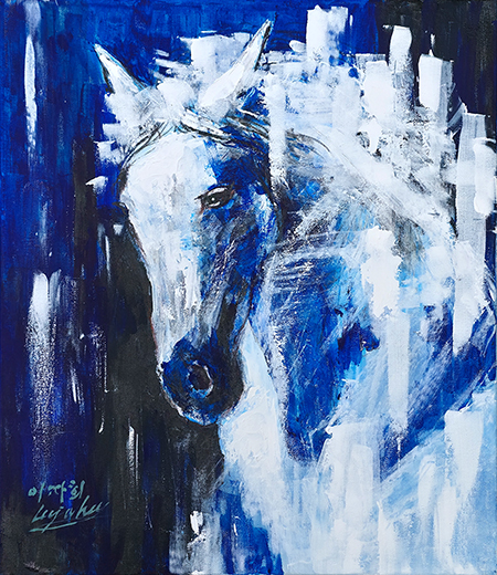 선생님의 거칠고 즉흥적인 붓질과 깊이 있는 색채는 자유롭고 스스로 길을 찾아나가는 에너지를 심어준다. 작가는 말이라는 매개체를 통해 자유로운 영혼에 공감하고, 감각적인 붓질을 통해 청사진을 그려 우연을 가장한 자기 내면에 질서를 구축하고 분출한다. 말의 형상을 빌려 생명의 근원과 성장과 발전하는 삶을 표현하며 궁극적으로 체제를 전복하는 전략을 사용한다. 자기반성적이면서도 자신의 원천을 찾아 자유롭고 성장하는 모습을 표현한다. 따라서 이자희 선생님은 병오년을 맞이하여 자아성찰과 존재의 근원을 찾아내 힘찬 도약을 하고자 한다.