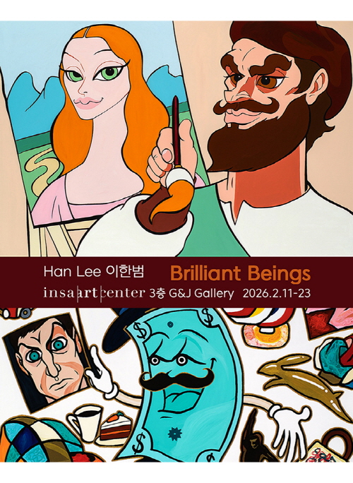 이한범 개인전 《Brilliant Beings》는 인간과 동물, 상상적 존재들이 뒤섞인 형상들을 통해 오늘날의 감정과 태도, 복잡한 기억과 정서를 응축해 보여주는 회화 전시이다. 작가는 선명한 색채와 단순화된 형태, 만화적이면서도 상징적인 이미지를 통해 감정의 층위를 직관적으로 드러낸다. 화면 속 존재들은 유머와 긴장, 순수함과 아이러니를 동시에 품은 채 관람자와 정면으로 마주하며, 특정한 서사를 설명하기보다 관람자 각자의 감정과 의식이 머물 수 있는 하나의 장면으로 기능한다.
