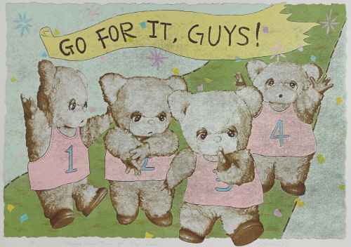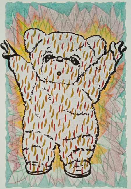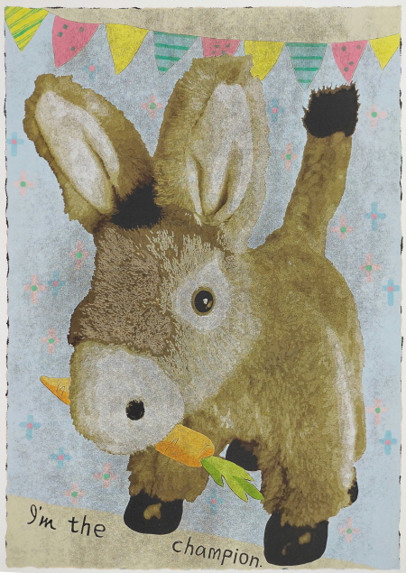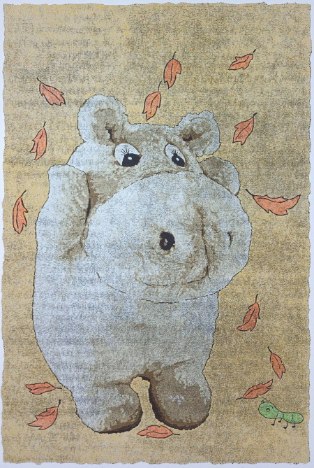 작품 속 인형들은 작가의 분신이다. 솜인형의 표정과 말에는 작가의 감정이 투영되어 있다. 부드러운 소재와 귀여운 이미지들 뒤로 자아가 애매하고 불안하여 흐릿하게 표출되는 감정들, 타인과의 소통과 불통이 만들어낸 여러 겹 뒤섞인 감정들이 산재하는데, 나의 판화는 이런 복잡한 감정들을 밝고 단순하게 단층화 시켜 가라앉히는 작업이며 대답을 찾아가는 과정이다.