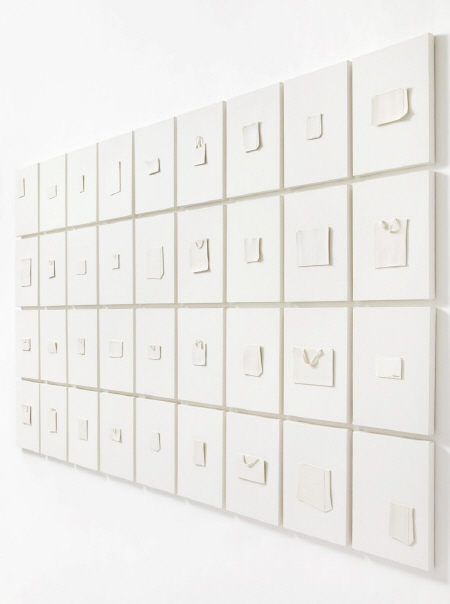 온화한 미색의 배경 위에 세라믹으로 빚은 종이가방이 부유하듯 놓여있다. 단순화된 형태와 절제된 색감은 차분한 안정감을 주고, 평면 위에 더한 입체 요소는 미묘한 깊이와 공간감을 형성한다.