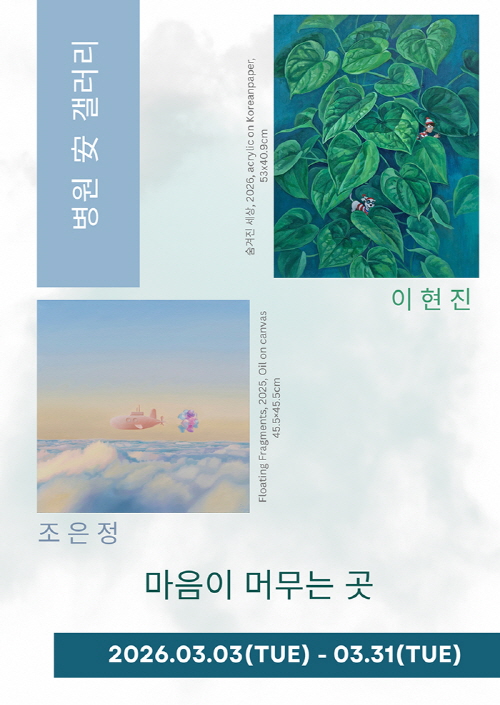 병원 安 갤러리는 2026년 3월 3일부터 3월 31일까지 조은정, 이현진 작가의 2인전 <마음이 머무는 곳>을 개최한다.