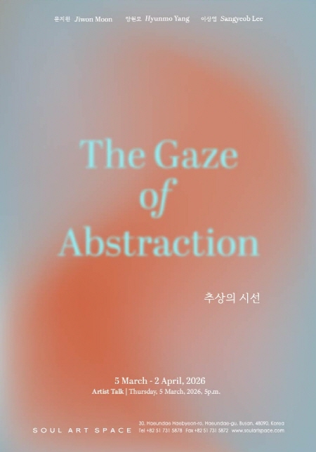 소울아트스페이스는 2026년 3월 5일부터 4월 2일까지 문지원, 이상엽, 양현모 작가의《추상의 시선 - The Gaze of Abstraction》展을 개최한다. 추상은 의미를 전달하는 언어 이전에 세계를 바라보는 시선으로 작동한다. 이는 대상을 설명하거나 해석하는 대신 무엇을 보고 무엇을 배제할 것인지 선택하는 태도에서 드러난다. 형태를 제거하거나 단순화하는 행위는 사물을 지우기 위함이 아니라 세계를 구성하는 관계와 흐름에 집중하려는 시선의 조정이다. 따라서 추상 회화는 해석을 요구하는 기호가 아니라 바라보는 방식을 제안하는 장이 된다. 이번 전시는 세 작가의 서로 다른 접근을 통해 동시대 추상 회화가 어떻게 세계를 바라보고 해석하는지를 살펴볼 수 있을 것이다.