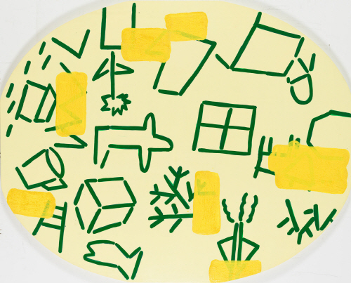 물감과 바탕이 맞닿는 표면은 그 분열의 다툼이 벌어지는 가장 생생한 격전장이다. 재현의 의무에서 이탈한 거친 색면이 자유로이 영역을 넓히고, 망막으로 즐기는 감상을 방해하고 기어이 읽기를 갈구하는 일상의 문자와 기호들이 난입한다. 형태의 균형을 정성스럽게 쌓아 올리던 색칠은 무심하게 휘갈겨진 낙서 한 줄에 의해 한순간에 허물어지고, 서로 다른 재료를 이어 붙이거나 포갠 흔적은 화면을 평평하게 유지해야 한다는 회화의 완고한 규범을 가만히 무너뜨린다. 여기서 조화는 파괴되고 그 자리에 생동하는 불협화음이 들어앉는다. 1970년대 한국 화단이 무채색의 비움과 고요한 수행으로 침잠할 무렵, 그는 그 단정하고 엄숙한 흐름에 머무르기를 단호하게 거부했다. 비워냄을 통한 깨달음을 구하는 대신, 시끄러운 원색의 파동과 다듬어지지 않은 일상의 파편들을 화면 한가운데로 기꺼이 끌어안으며 수많은 목소리가 들끓는 과잉의 공간을 캔버스 위에 활짝 열어둔 셈이다.
