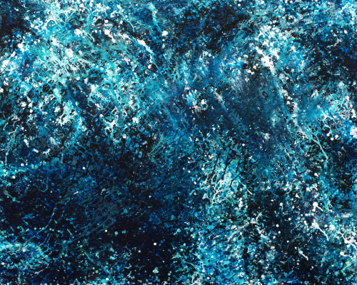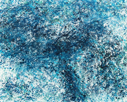 작품에 삶의 동선을 파악하여, ‘드리핑 흘리기 기법’으로, 존재에 대한 고백과 삶에 대한 ‘자서전’을 그려 나간다. 지중해 바다의 수면에 하늘빛이 비춰져 하늘과 땅이 융합되고, 동서가 결합되었다. 밤이 되니 수면은 잠잠하나, 물결의 움직임이 별빛같이 수를 놓았다. 그가 쉬지 않고 일을 하고 있는 것을 알았다.