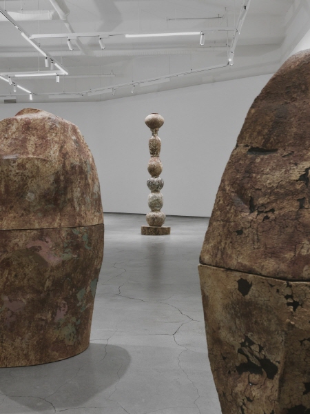전시는 풍경과 자연을 사유하고 재현하는 태도들을 겹쳐본다. 일반적으로 동양에서 산과 돌은 마음을 담는 자연물로 이해되어 왔으며, 축소된 자연은 하나의 세계로 사유될 수 있었다. 반면 서구적 전통에서 자연은 관측되고 측량되며 분석되는 대상으로 다뤄져 왔다. “보헤미아는 바다 사이에 있다”라는 문장은 이러한 태도 사이를 오가며, 자연을 고정된 이미지가 아닌 끊임없이 변화하는 상태로 사유하게 한다. 작가는 <괴석>을 통해, 자연이 관념이나 이미지로 재현되기 전의 물질적 순간을 드러낸다. 일상의 흙으로 세라믹을 실험했던 기존 방법론의 연장선에 있는 이 작업은, 자연과 인공이 충돌하는 표면과 형태, 모호한 스케일로 인해 관람자의 판단을 유보한다. 작업과 관람자의 거리감에서 발생하는 감각을 통해, 자연과 조각, 그리고 물질과 형태의 경계를 탐색하게 한다.