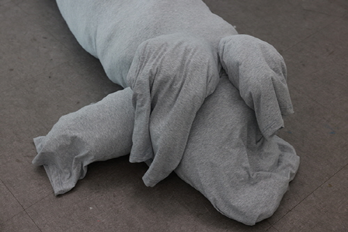 김해미 作_어떤 의지 2025_솜, 천, 알루미늄 파이프_38x37x434cm