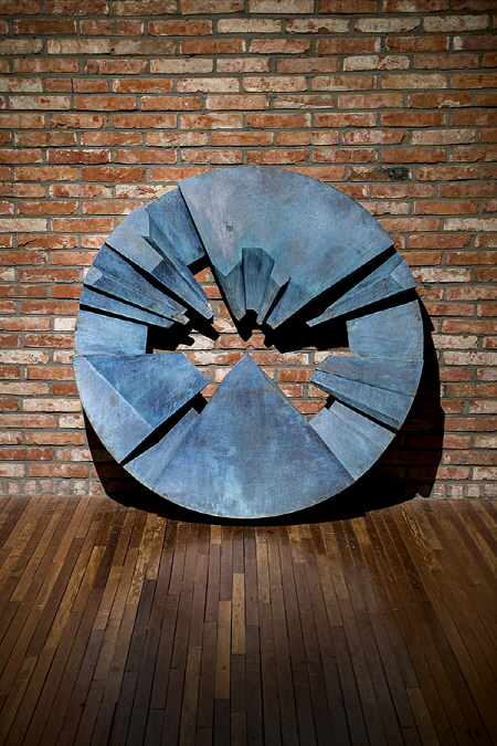 황련선 作_카르페디엠 2025_철 용접, 철판에 에칭_130x15x130cm