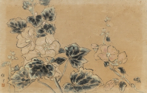 천경자 作_접시꽃_41.7x64.7cm_종이에 먹_1947