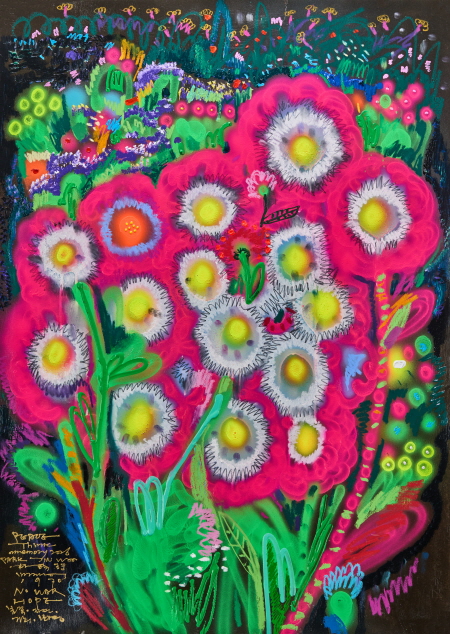 거칠게 교차하는 선과 과감한 색감이 만들어내는 화면의 긴장감은 관람객을 작품 내부의 강렬한 생명력으로 인도합니다. 캔버스 위를 유영하는 자유로운 조형 언어를 통해, 잊고 지냈던 내면의 찬란한 순간들을 마주하시기 바랍니다.