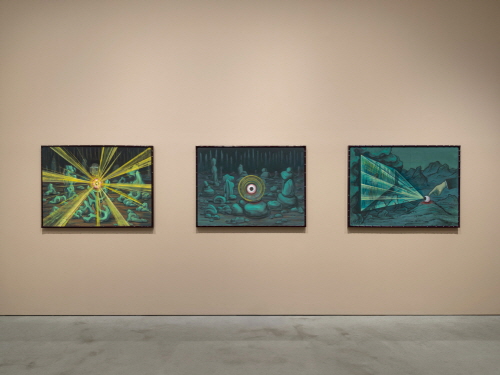 한편 <괴석 1>,<괴석들>과<프로젝션>연작은 기암괴석 그림에 배어 있는 현학(玄學, 노장사상에서 말하는 우주의 오묘한 이치)에 대해 묻는 일종의 ‘그림 퀴즈’로, 작가는 옛 괴석도가 이미 ‘인류 없는 우주’를 상상했다는 점에서 인간 중심의 사유에서 벗어나려는 작금의 노력과 맞닿아 있다고 본다.