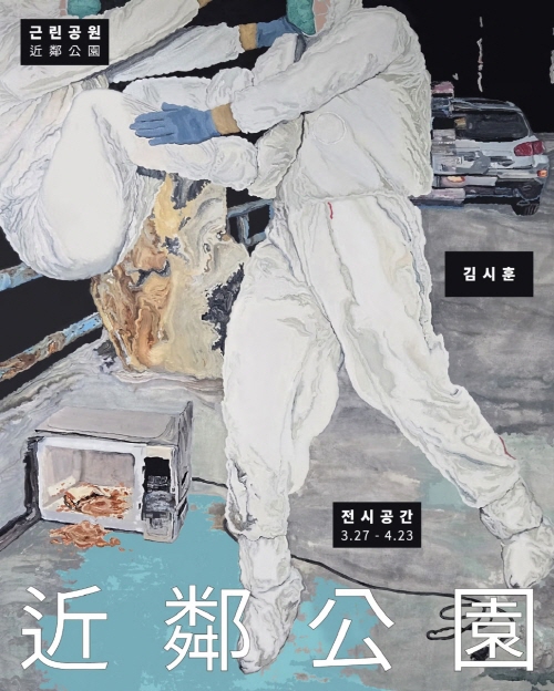 <근린공원>(近鄰公園)은 우리가 매일 지나치는 것에 대한 전시다. 공원은 특별한 장소가 아니다. 집 근처, 길 옆, 아무 목적 없이 잠시 머물다 가는 곳. 목적지가 아니라 사이에 있는 공간. 그러나 김시훈의 캔버스 안에서 그 평범한 근방은 서사가 증발한 채로 새로운 밀도를 얻는다. 그림들은 각각 독립적이면서도 하나의 감각으로 이어진다. 정합적이지 않은 세계의 조각들이 나란히 걸려, 전체를 설명하는 대신 각자의 자리에서 조용히 존재한다.
