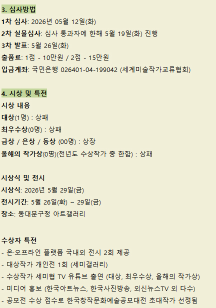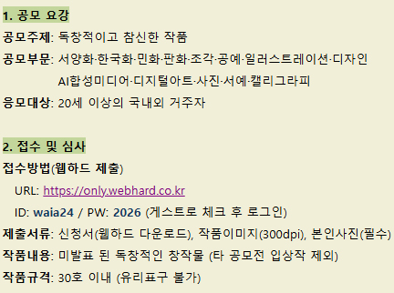 * 전시메일에 등록된 모든 이미지와 글은 작가와 필자에게 저작권이 있습니다. * vol.20260406-2026 제14회 한국창작문화예술공모대전 |