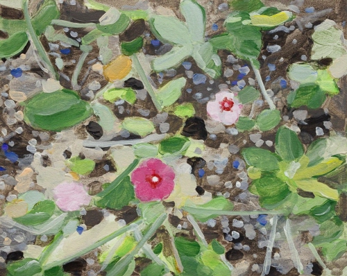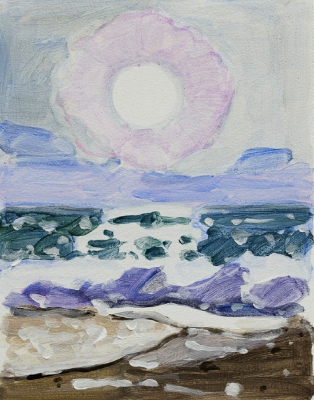 미국 코네티컷(Connecticut)의 해안가와 뉴욕을 오가며 생활하고 작업한 최근의 과도기적 시기를 배경으로 두는 이번 전시작들은 갈라스가 오랜 기간 그려온 대상들에 대해 보다 예민해진 감각을 드러낸다. 작가 특유의 주제에 대한 몰두와 절제가 돋보이는 작업들은 장소와 그에 대한 관점 및 시간의 흐름에 대한 확장적 사유로 이어진다.