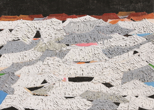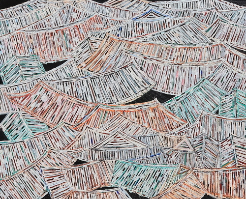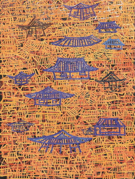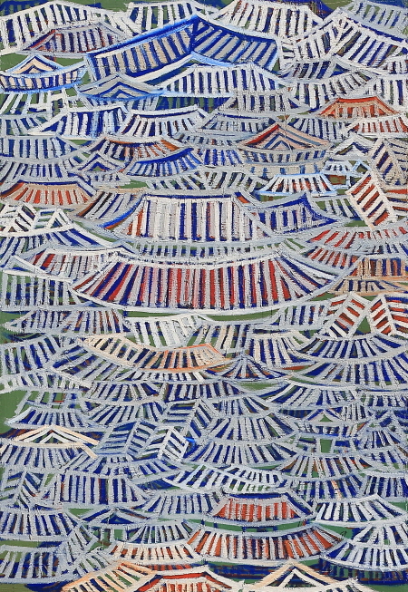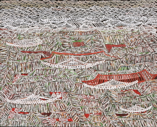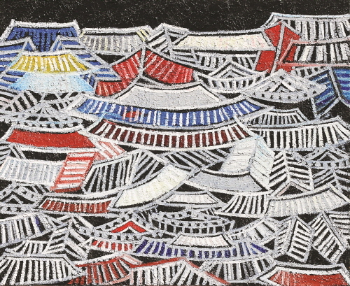 서까래를 연상시키는 물감층의 두툼한 골격은 붓질과 기와의 선(線)들이 만들어 내는 결들이며, 마침내 입체적인 멋진 마을 풍경이 되고 만다. 어떤 작품은 임금이 사는 궁궐과 한양을 표현하였는데, 그 바탕에는 반복된 수많은 한옥이 숨어 있다. 이 한옥들은 동시대 사람들의 희로애락과 경제적인 풍요로움을 의미한다. 어떤 작품은 아주 세련된 도시의 모습을 표현하고자 간결한 선과 단순한 밝은 색채를 사용하여 기와집을 반복하여 표현한 작품도 있다. 이 작품들은 묵직함과는 대조되는 세련됨과 간결함으로 한옥의 또 다른 면을 표현하고자 했던 것이다.