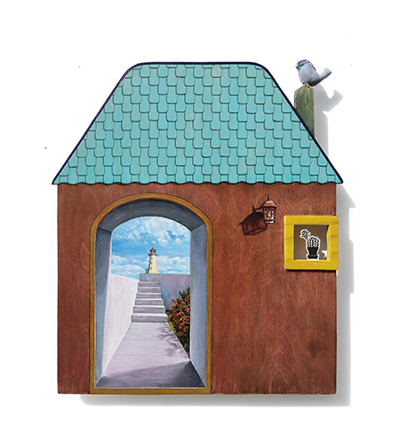 집이 건네는 말-빛이 숨을 쉬는 집 61x60x6cm_자작나무 합판 위에 아크릴, 목판화 컷팅, 나무 ,데님천_2026