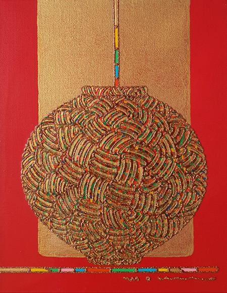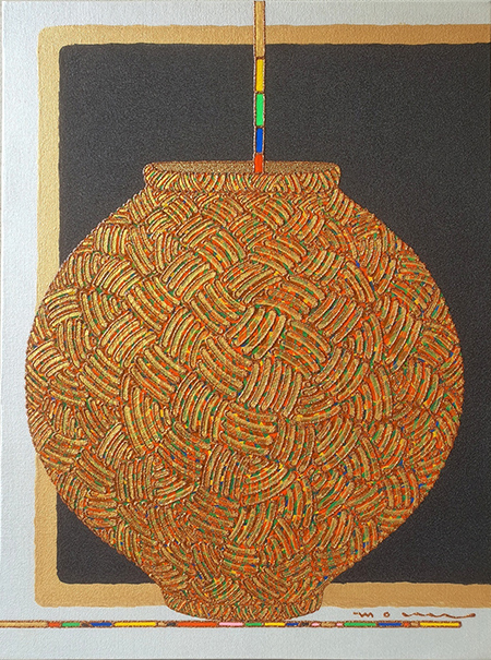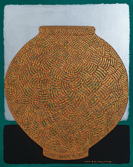 작품 속 달항아리는 비어 있는 듯 보이지만, 그 표면에는 수많은 시간의 흔적이 새겨져 있습니다. 오방색의 질서를 바탕으로 형성된 색의 흐름은 화면 전체에 리듬을 만들며, 안정된 형상 안에서 끊임없이 움직이는 감각을 형성합니다. 이는 정지와 흐름, 충만과 결핍이 동시에 공존하는 상태를 보여줍니다.