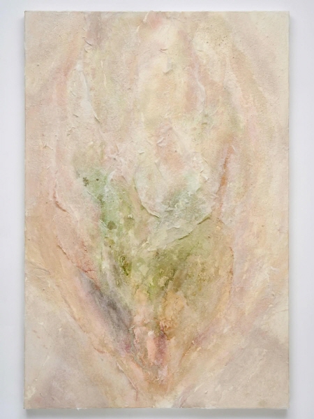 보킴 作_피어 가는 줄도 모르다 2026_캔버스에 한지, 모래, 아크릴릭, 콩테_150x100cm