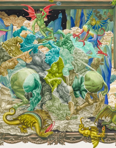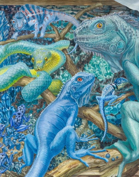 물과 함께 부유하던 안료 입자들이 서서히 화면 위에 안착한다. 물이 증발한 자리에서 선명해진 물감의 흔적은 층을 이루며 포개지고, 얇게 스민 결은 서로를 스치며 미묘한 차이를 남긴다. 눌린 자국은 사라진 순간의 자리를 드러내고, 으스러진 존재는 그대로 박제된다.