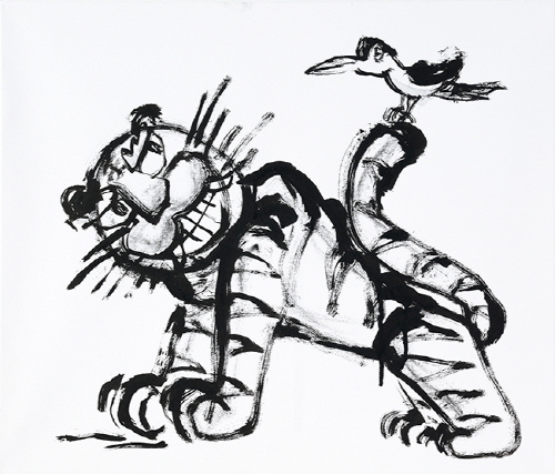 해피 타이거 드로잉(Happy Tiger Drowing)_Ink on canvas_45.5x53cm_2026