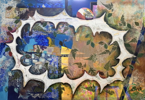 방정희 作_가시관:우리는 누구나 나만의 가시관을 쓴다_100x70cm_캔버스 위 아크릴, 오일파스텔, 혼합재료