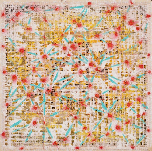 인드라NO.2_80x80cm_한지죽, 실, 혼합재료_2025