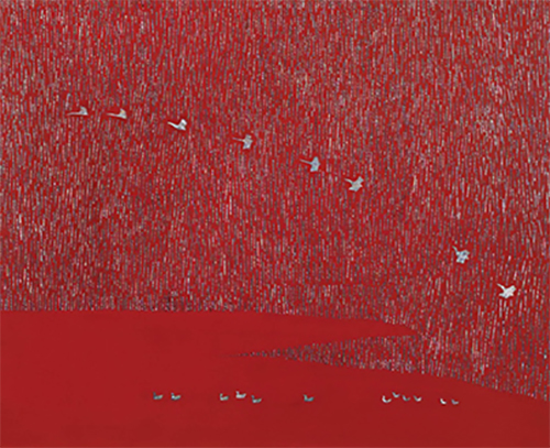 소리_116.8x91cm_옻칠목태캔버스, 나전, 옻칠재료_2023